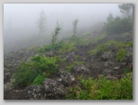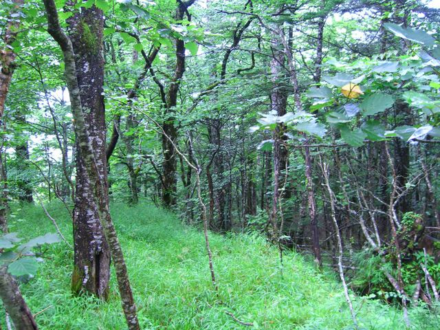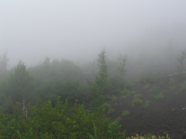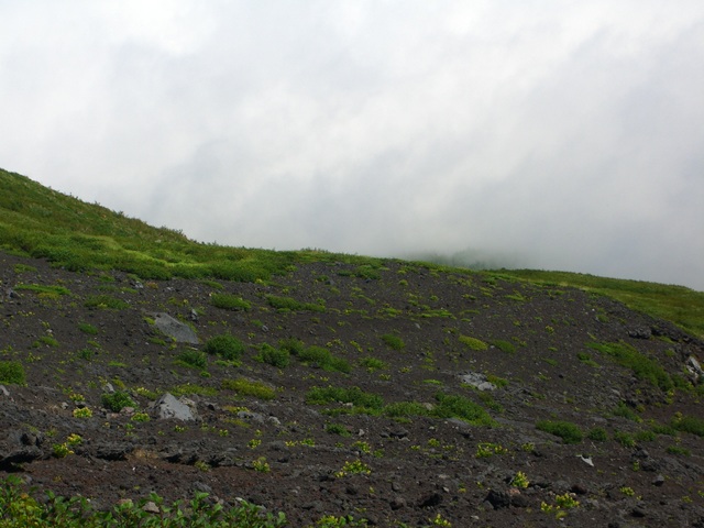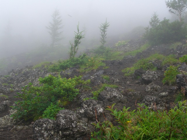 登り始めはスッキリしない曇り空、近くに有るハズの富士山は見えない