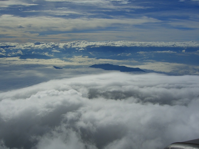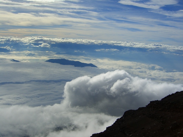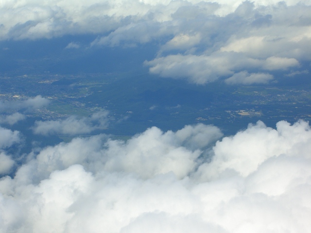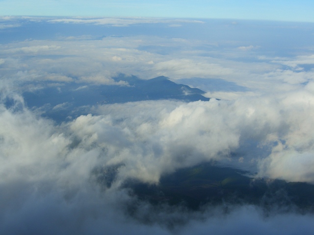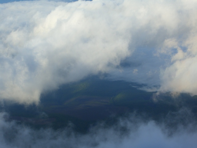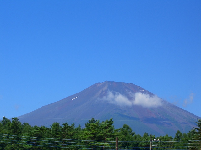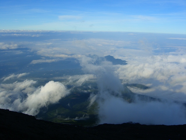 好天気の日、下界から眺める富士山の姿・形とは打って変わった